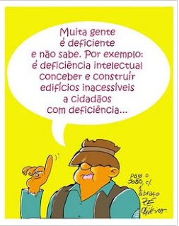 O cartune que nos mostras é inteligente. Ainda hoje me deparei com a questão da acessibilidade através de cadeira de rodas a um Museu. Pensei nisso, porque fica no 1º andar, com acesso unicamente por escadas... sem qualquer srtesse e nem que tenha de muito parlendar com as autoridades competentes, tenho uma fezada: hei-de resolver o problema.