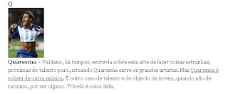 Quanto ao racismo que Quaresma é alvo, Francisco tem toda a razão, isto a acreditarmos na versão de Quaresma, claro...